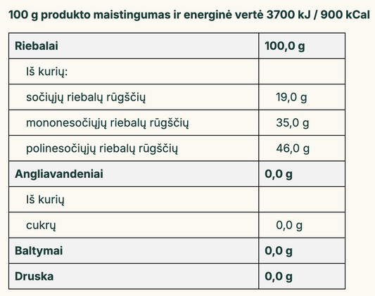 Natūralūs aliejai – maisto gamybai, grožiui, sveikatos stiprinimui. Nerafinuotas, šalto spaudimo augalinis aliejus išlaiko visas vertingąsias medžiagas, pasižymi maistingumu ir nauda sveikatai.