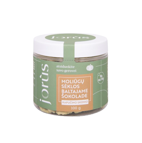 Kapučino skonio moliūgų sėklos baltajame šokolade