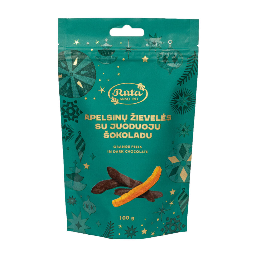 Išraiškingo skonio džiovintos apelsinų žievelės su juoduoju šokoladu – klasika tapęs gaminys. Apelsinų žievelės pasižymi citrusiniu aromatu ir subtiliu karčiai saldžiu skoniu. Šokolade kakavos sausųjų medžiagų – 55 %.