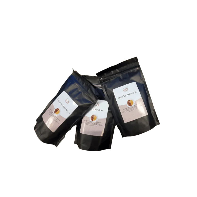 Sudedamosios dalys: skrudinta malta kava, aromatizuota auksinės karamelės kremo skonio kava.