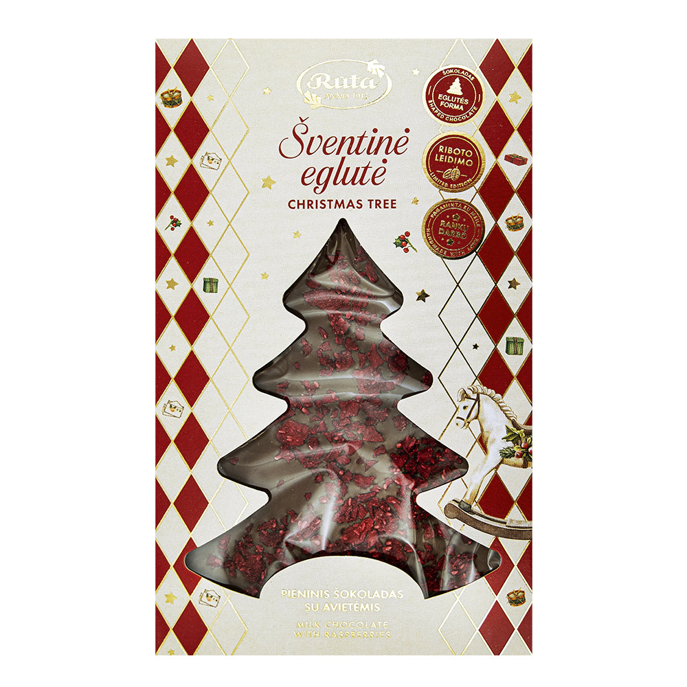 Pieninis šokoladas su avietėmis „Šventinė eglutė“