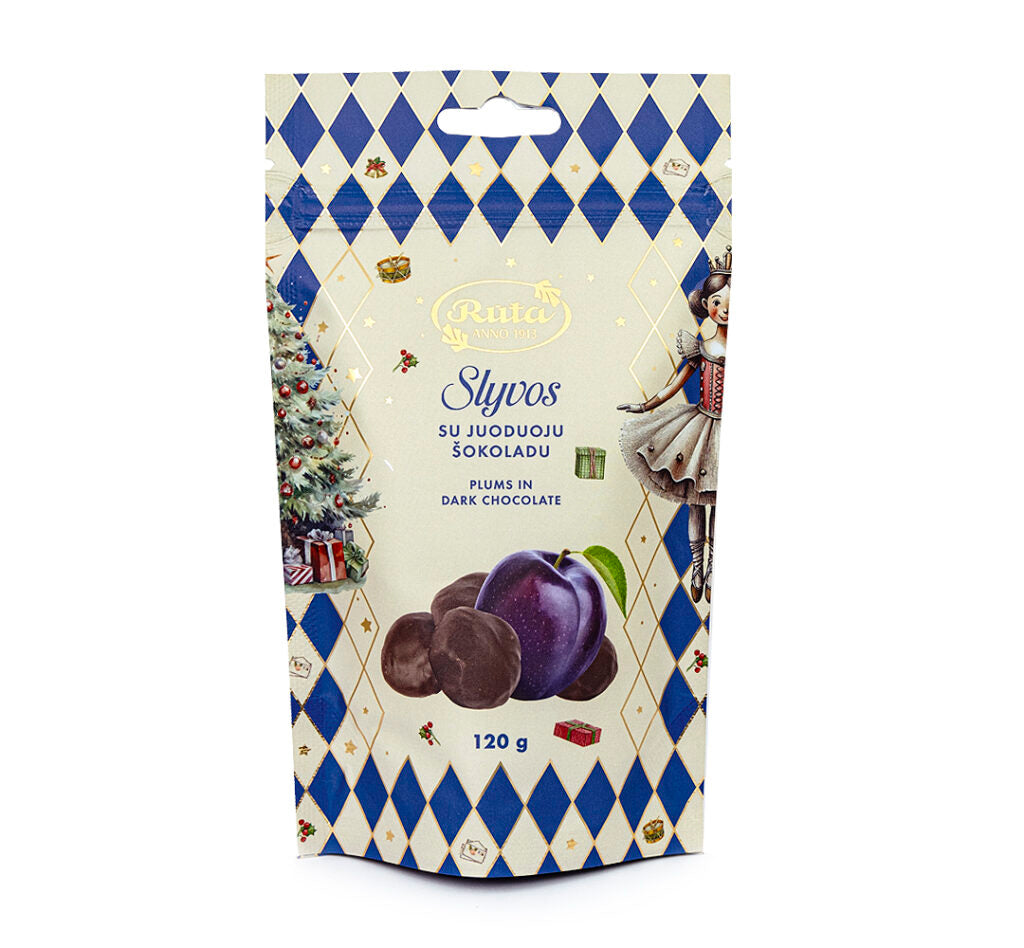 Slyvos pateikiamos šventinio dizaino pakuotėje, kurioje susipina nostalgija dvelkiančių žiemos švenčių nuotaika, šventiniai stebuklai ir vaikystės prisiminimai.