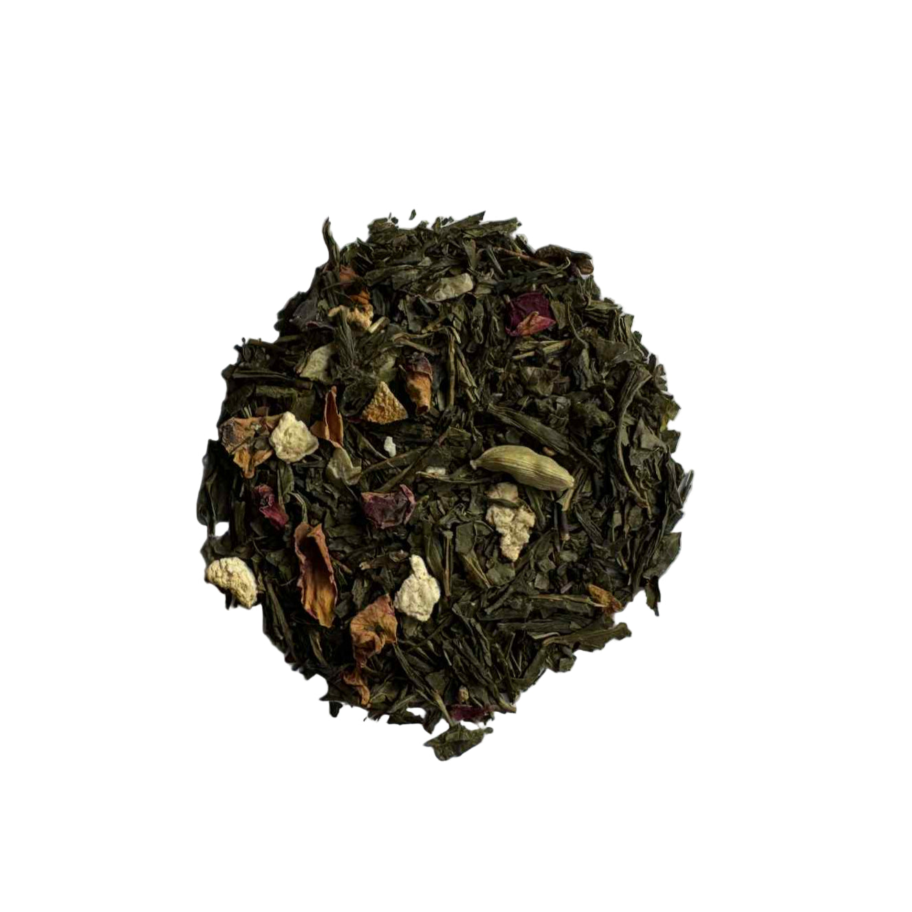 Sudedamosios dalys: žalioji arbata Sencha, apelsinų žievelės, rožių žiedlapiai, migdolai, kardamonai, gvazdikėliai, kvapniosios medžiagos.