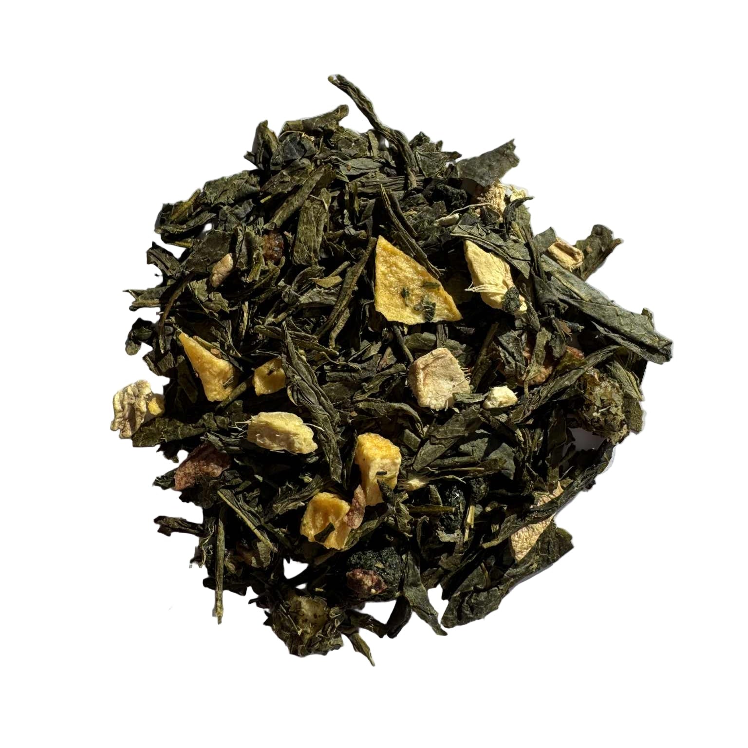 Gaivus žaliosios arbatos Sencha mišinys su imbiero aitrumu, saldžiarūgšte kriauše, pasiflorų granulių egzotika ir džiovintų obuolių lengvumu. Spirulinos traškučiai suteikia natūralios energijos bei antioksidantų, o natūralūs kvapai subtiliai užbaigia šį harmoningą skonį.