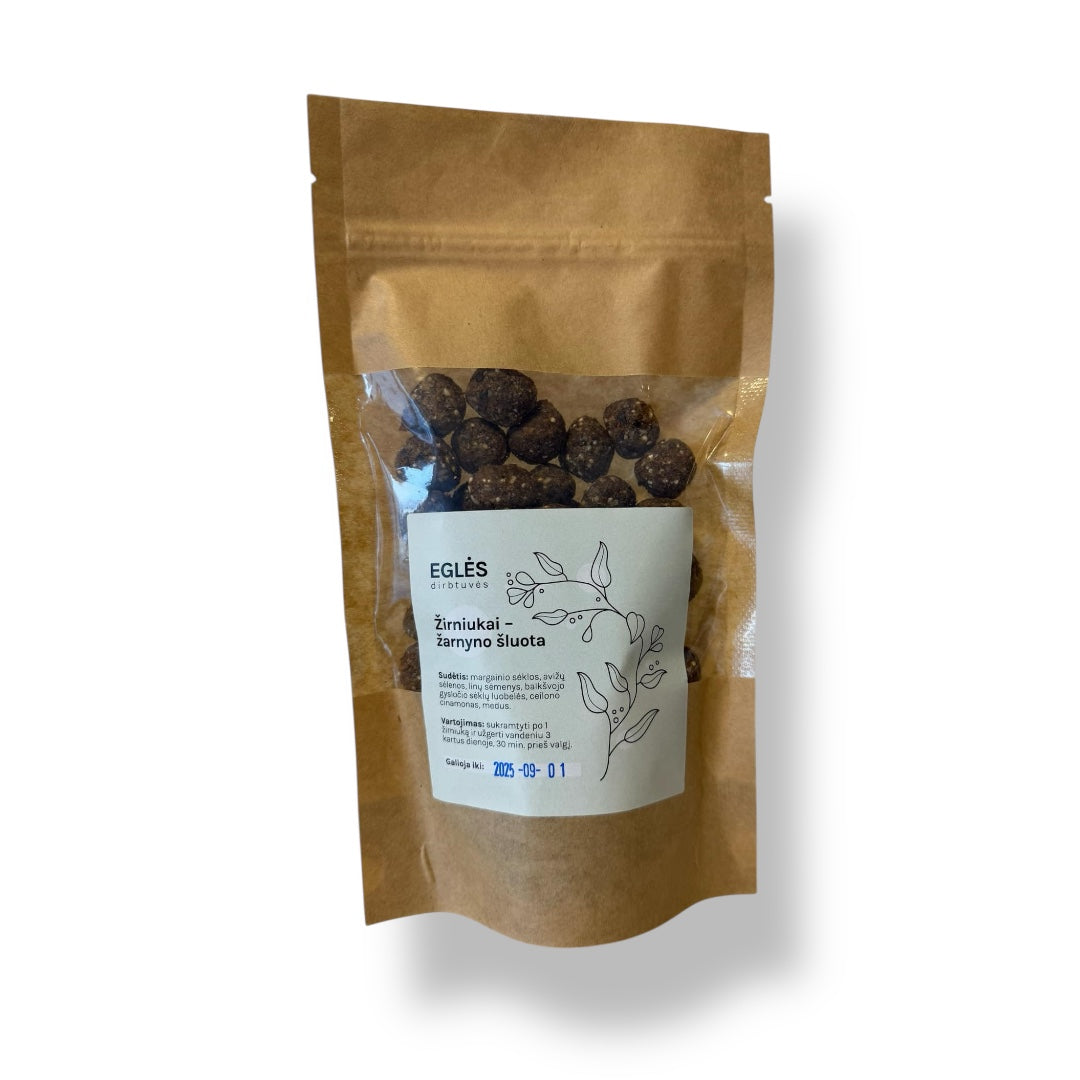 Natūralūs žirniukai, kuriuose yra įvairių sėklų ir kitų augalinių ingredientų, kurie gali padėti palaikyti sveiką virškinimą ir detoksikaciją.
